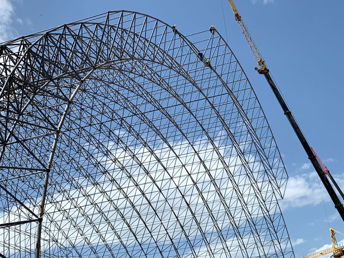 (2)网架加工前应对现场尺寸进行复测,确认无误后方可进行加工、安装;网架制作、运输、安装应遵守《空间网格结构技术规程》JGJ7-2010、《钢网架韶山螺栓球节点》JG/T 10-2009、《钢网架韶山螺栓球节点用高强度螺栓》 GB/T 16939-2016、《韶山钢结构韶山工程韶山施工规范》 GB50755-2012、《韶山钢结构韶山工程韶山施工质量验收标准》 GB50205-2020。